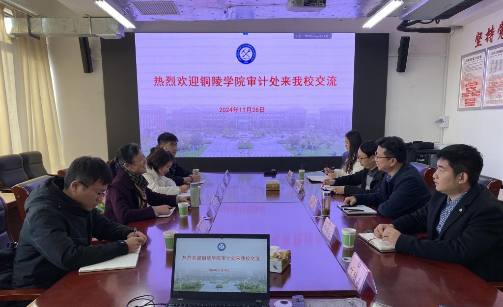 2024年11月28日下午,铜陵学院审计处负责人一行5人来我校调研交流。校审计处负责人与其在行政楼529会议室进行座谈交流。